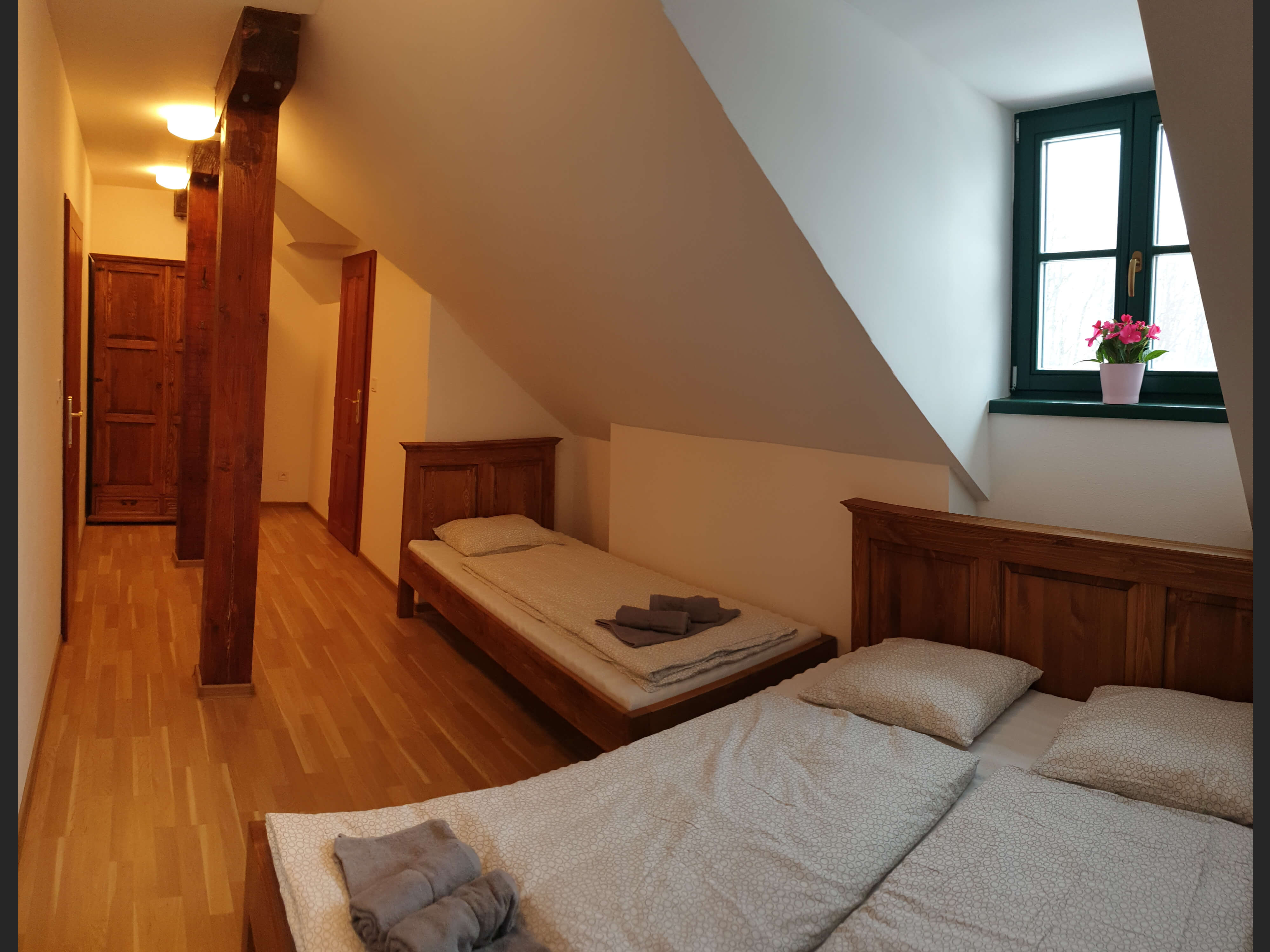 V trojlôžkovej izbe sa nachádza manželská posteľ a somostatná posteľ. Samostatné WC so sprchou, televízor. V každej izbe je wifi zdarma.